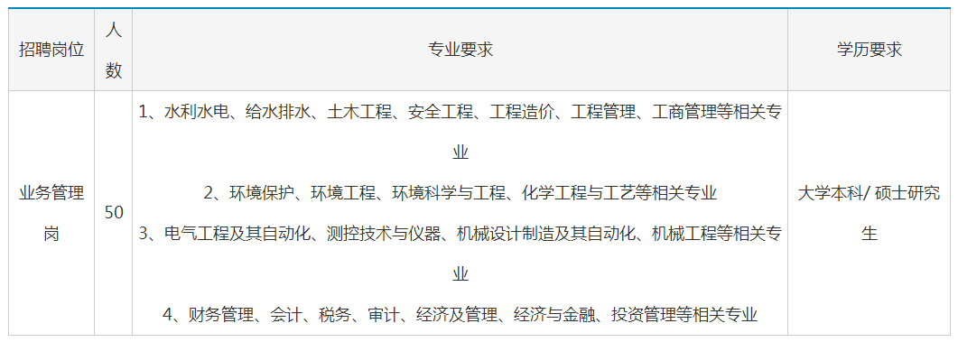1.待遇:招聘的管理崗人員與總公司/環(huán)保產業(yè)研究院簽訂勞動合同,入職統(tǒng)一繳納“六險二金”,第一年稅前收入8 -12萬元,第二年稅前收入12-15萬元,第三年稅前收入15-30萬元。